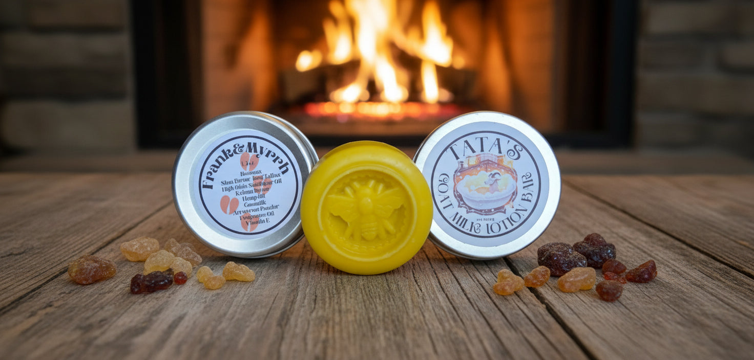 These little super concentrated pucks of moisturizer help moisturize dry, painful, cracked and itchy patches. Natural Made with nourishing organic ingredients Goatmilk, Tallow, Beeswax, butters, Hemp oil, Vitamin E, amazing powders like arrowroot!