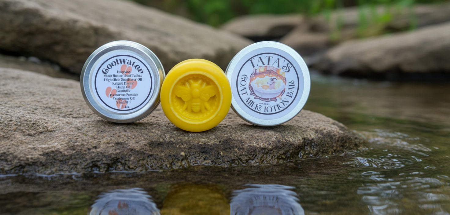 Goatmilk contains vitamins and nutrients that moisturizes. Goat milk contains essential fatty acids and triglycerides that provide deep hydration for skin’s natural moisture barrier. I also have a lotion bar that is made with Karanja oil great heavy hitting oil! My family suffered from eczema, psoriasis and fugal irritations, so I journeyed down the road with my goaty herd to make better products for them including oils and butters that moisturize. I threw out those nasty chemicals.
